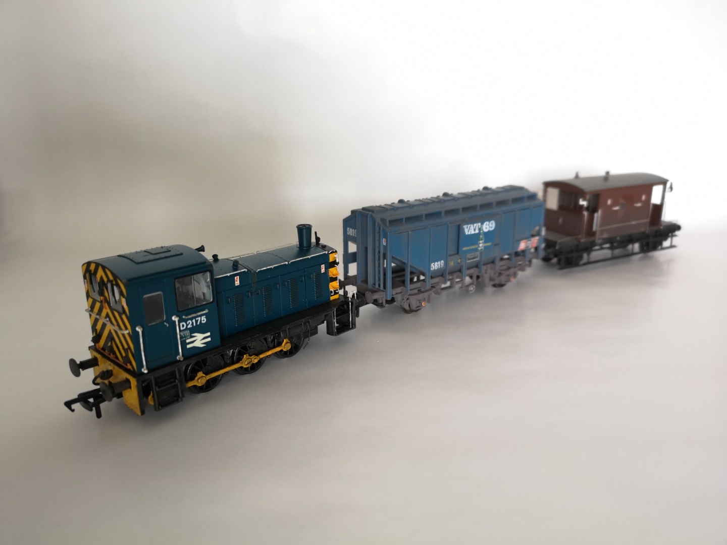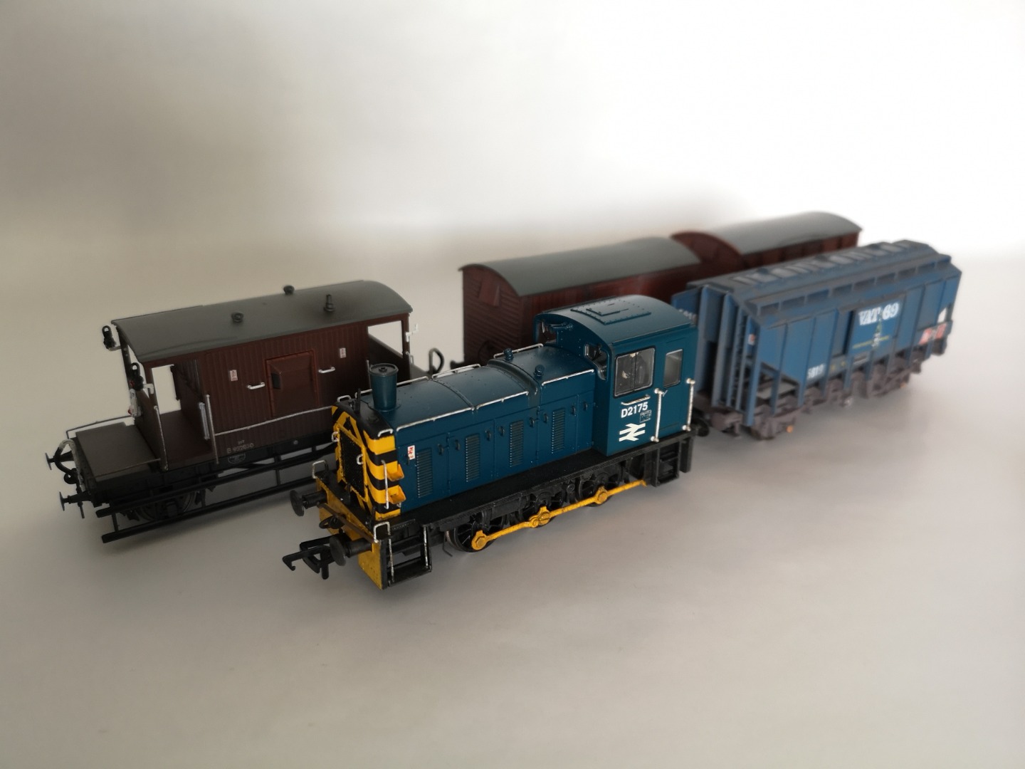 The model admittedly retains it's NEM couplings but this is to ensure compatibility with my rolling stock until an alternative arrangement is found. I have acquired and done detailing/weathering work on quite a range of period appropriate wagons as I have a particular interest in the late 1960's pick up freight scene of Norfolk, with Class 31's trundling up lines long since closed to passenger traffic; a small selection of these wagons can be seen with D2175.