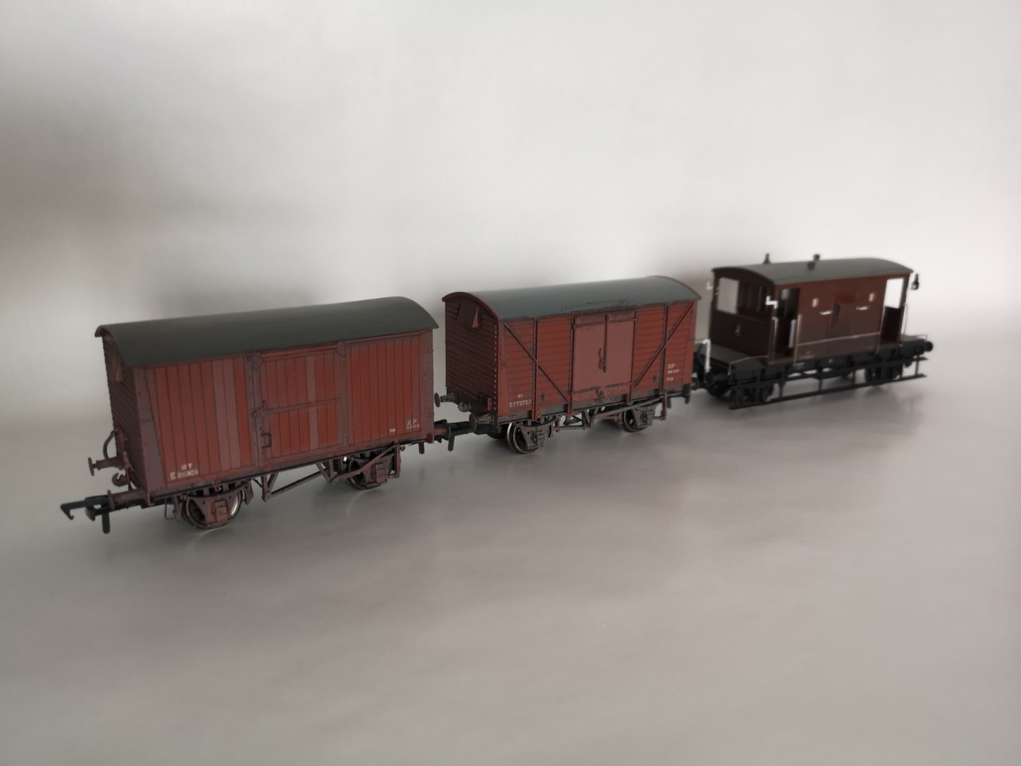 The brakevan seen is a pre-weathered Bachmann model that I have detailed by adding vacuum pipes as well as side and tail lamps and a screw link coupling to the rear end.