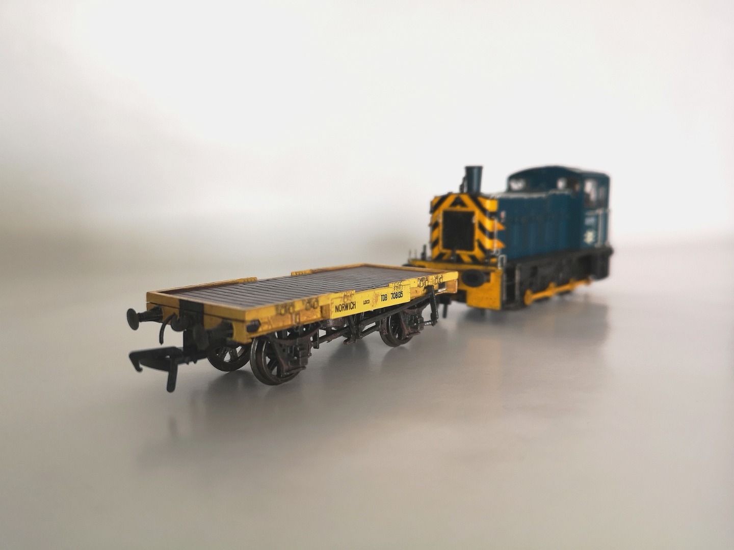 Finally, and of particular note, is Conflat A TDB708135, a Norwich based shunter's running wagon that, whilst in a slightly later yellow livery, was too good a find not to acquire and pair up with D2175. I have weathered this wagon and added a brake pipe to each end.