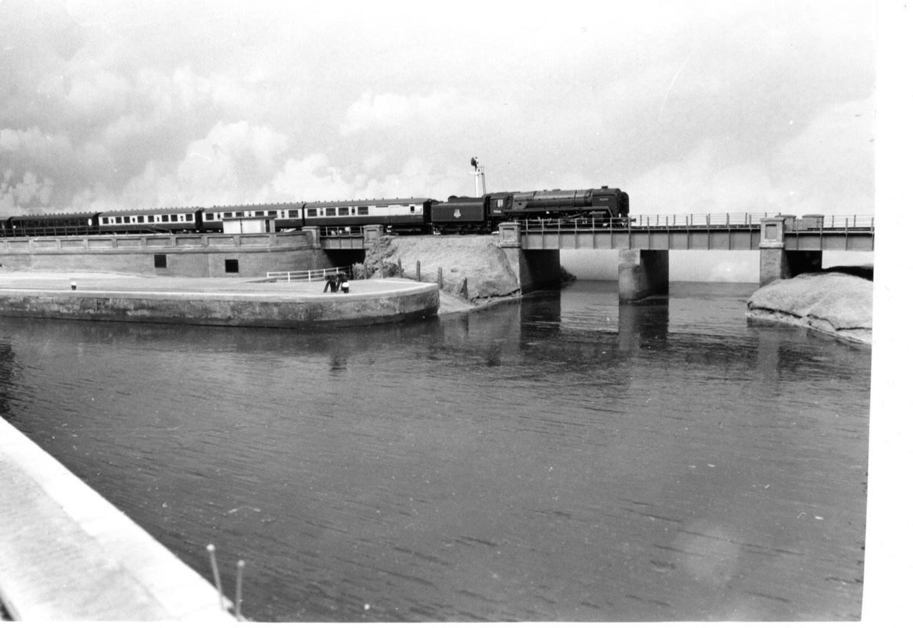 A J15 takes a local freight over the bridge crossing the Dunwich River