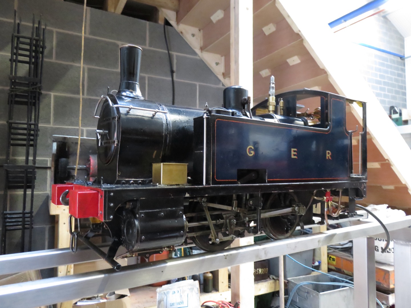 By now it was 2012 and I was still not expecting to have a GER loco when a 5” gauge T26 2-4-0 became available and was purchased quickly before I lost the opportunity. I believe it was originally built by David Garrick who also built an N7 but I didn’t get to see that one. It took me a few months to get it up to scratch for the mandatory boiler certification as it was the first time I had done so but once up and running I had five good years running mainly at Ryedale Model Engineers track with the odd trip away. Unfortunately one of the valvegear eccentrics then slipped and it is currently awaiting overhaul as it is a full boiler off job to get access to do the necessary.