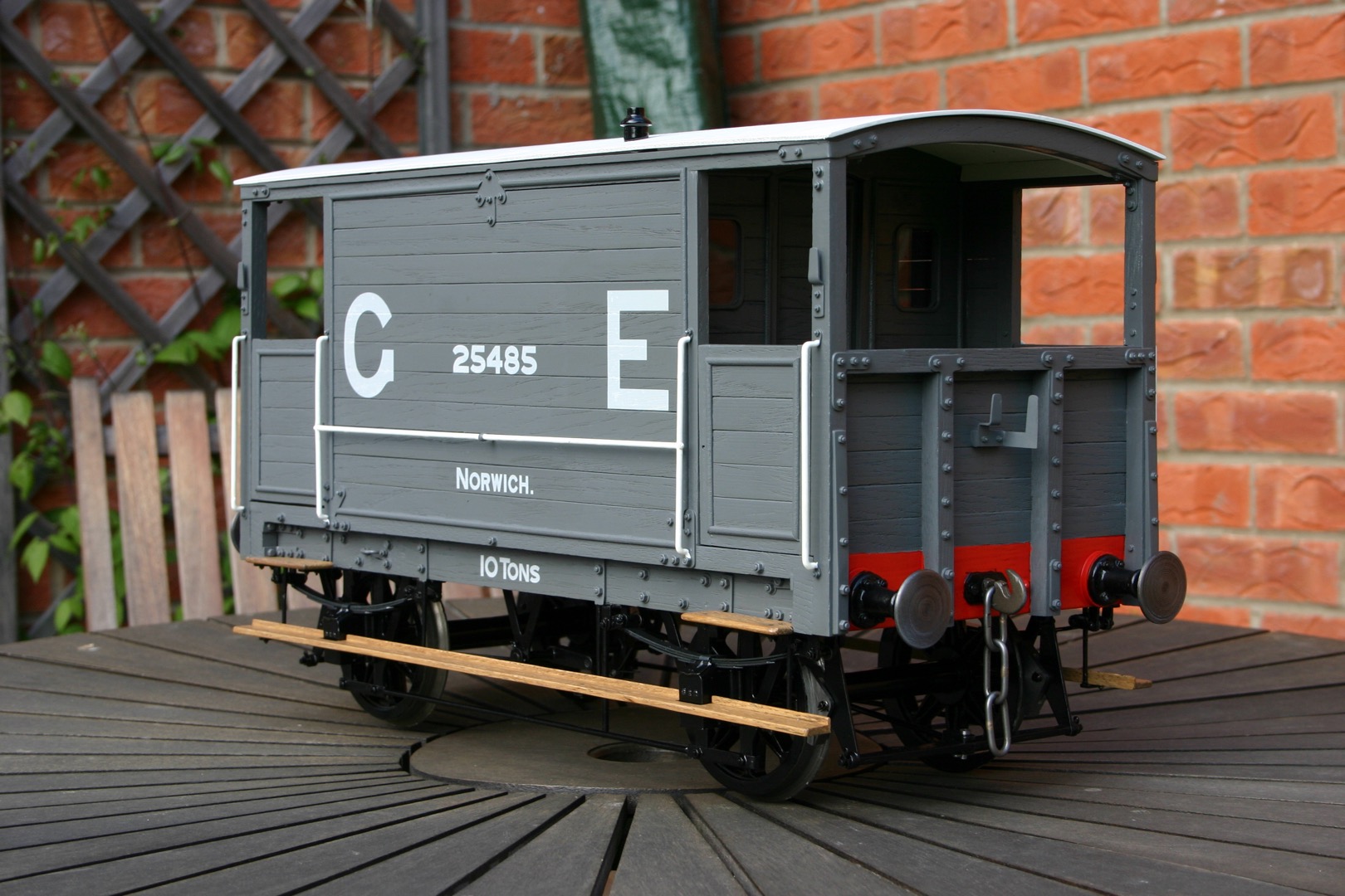 Having now got a bit of a taste for the quicker results from building wagons and having won a set of split spoke cast iron wheels on eBay I cast my eye through the various books and decided to build a Dia.1 10Ton Brake Van. This time there was no kit available so a General Arrangement drawing was obtained from the NRM and off I went using a mixture of commercial fittings and lots of hand cut platework & timber.