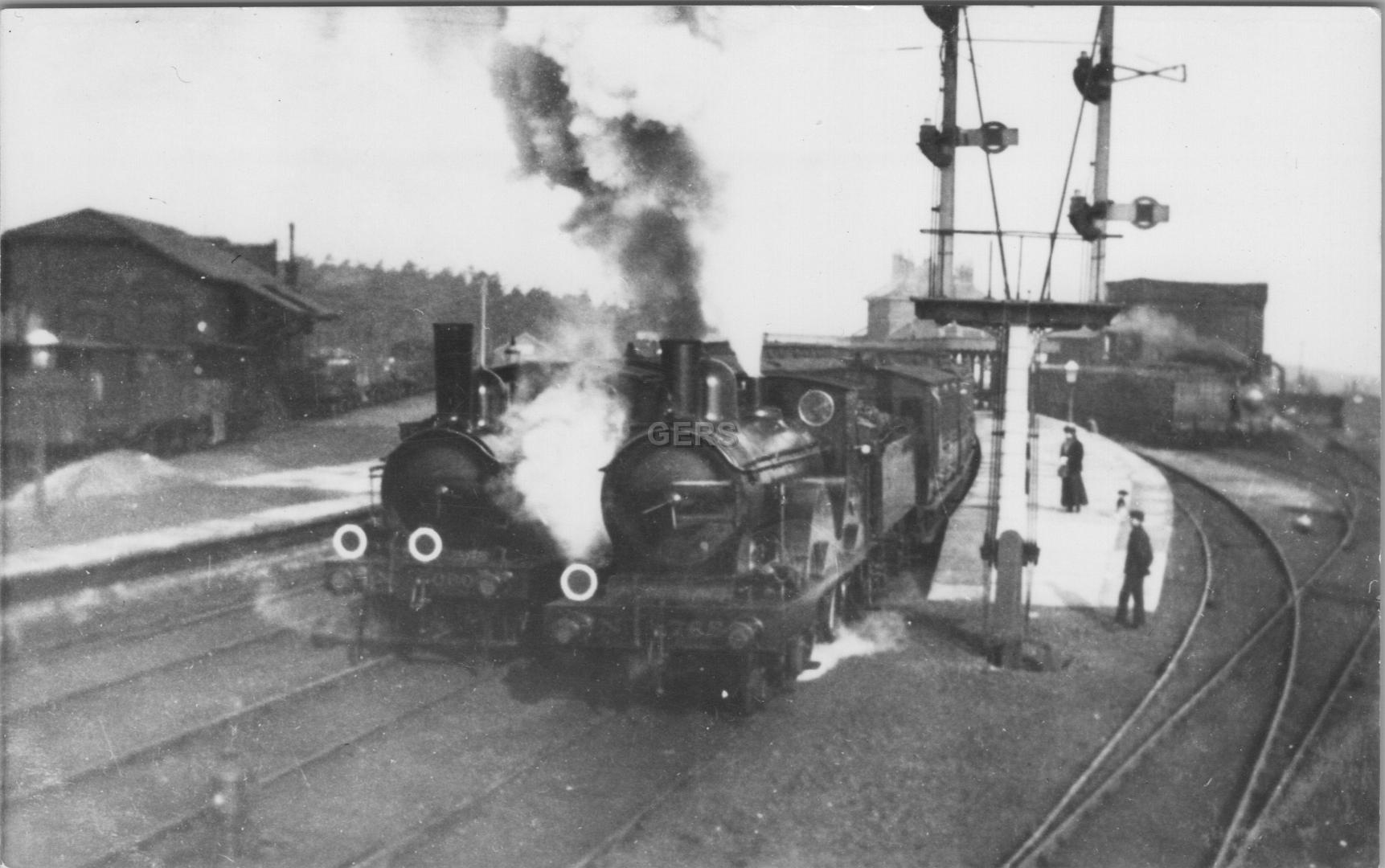 General View towards station, T19 2-4-0 768 and '134 Class' 0-4-4T 0201 in platforms
