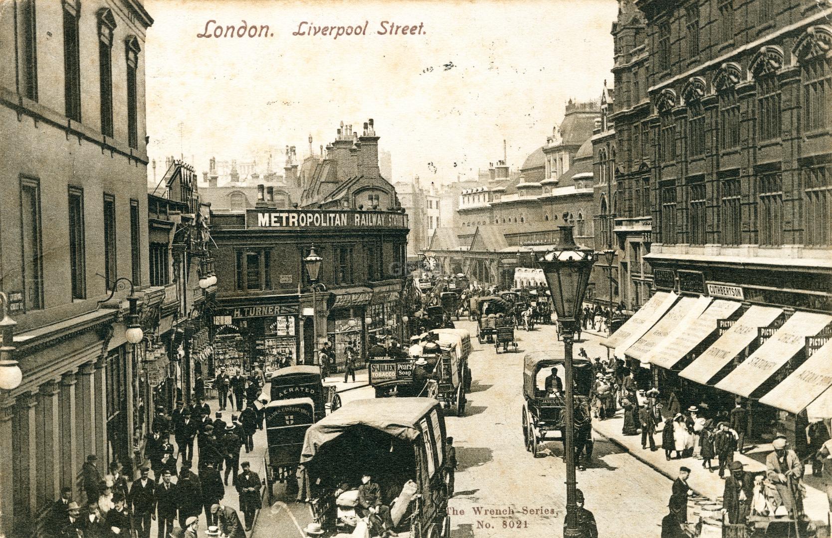 Postcard view of Liverpool Street towards Metropolitan Rly station