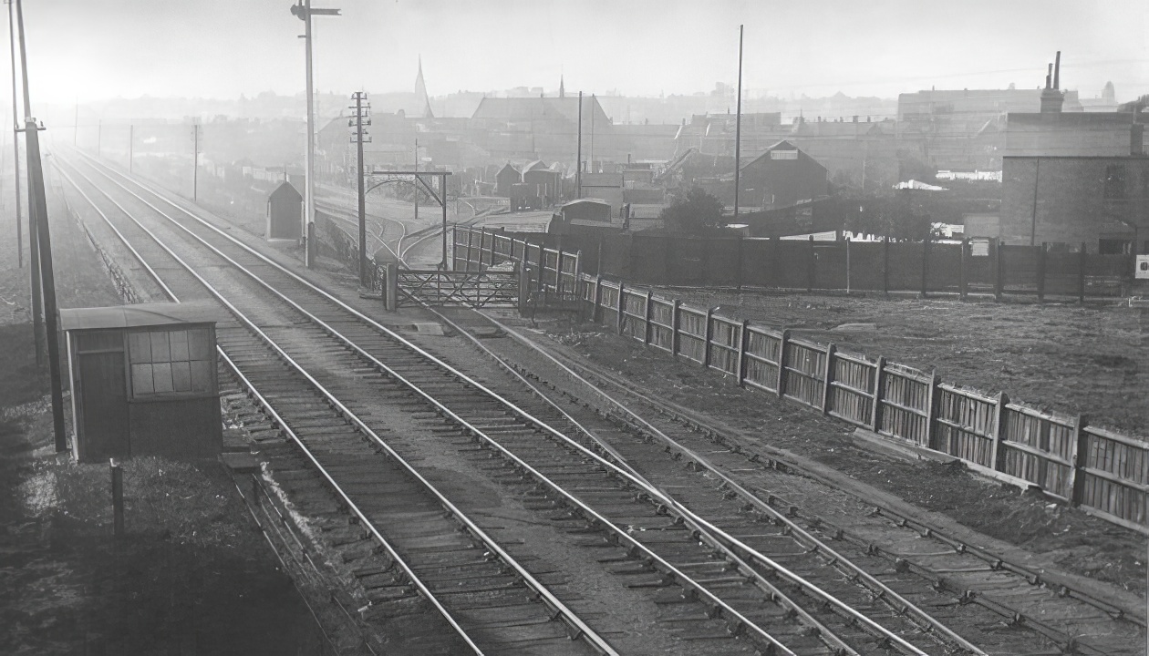View from Westbury Road overbridge looking into goods yard.