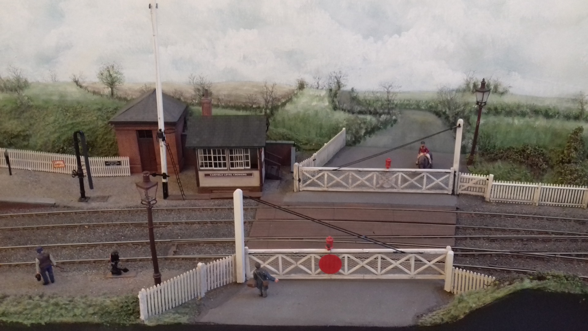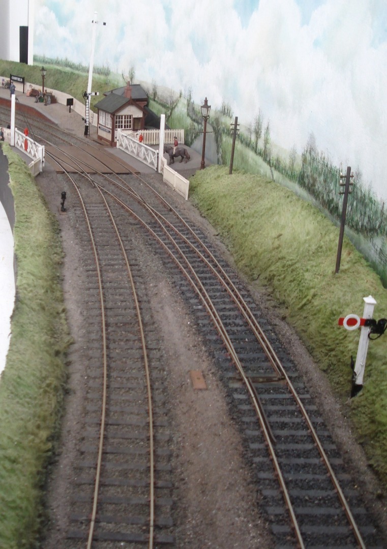 The larger level crossing has a staffed crossing box controlled by the main box. Both crossing and box are East Anglicised Peco offerings. Rural backscenes for GE territory are another topic perhaps.