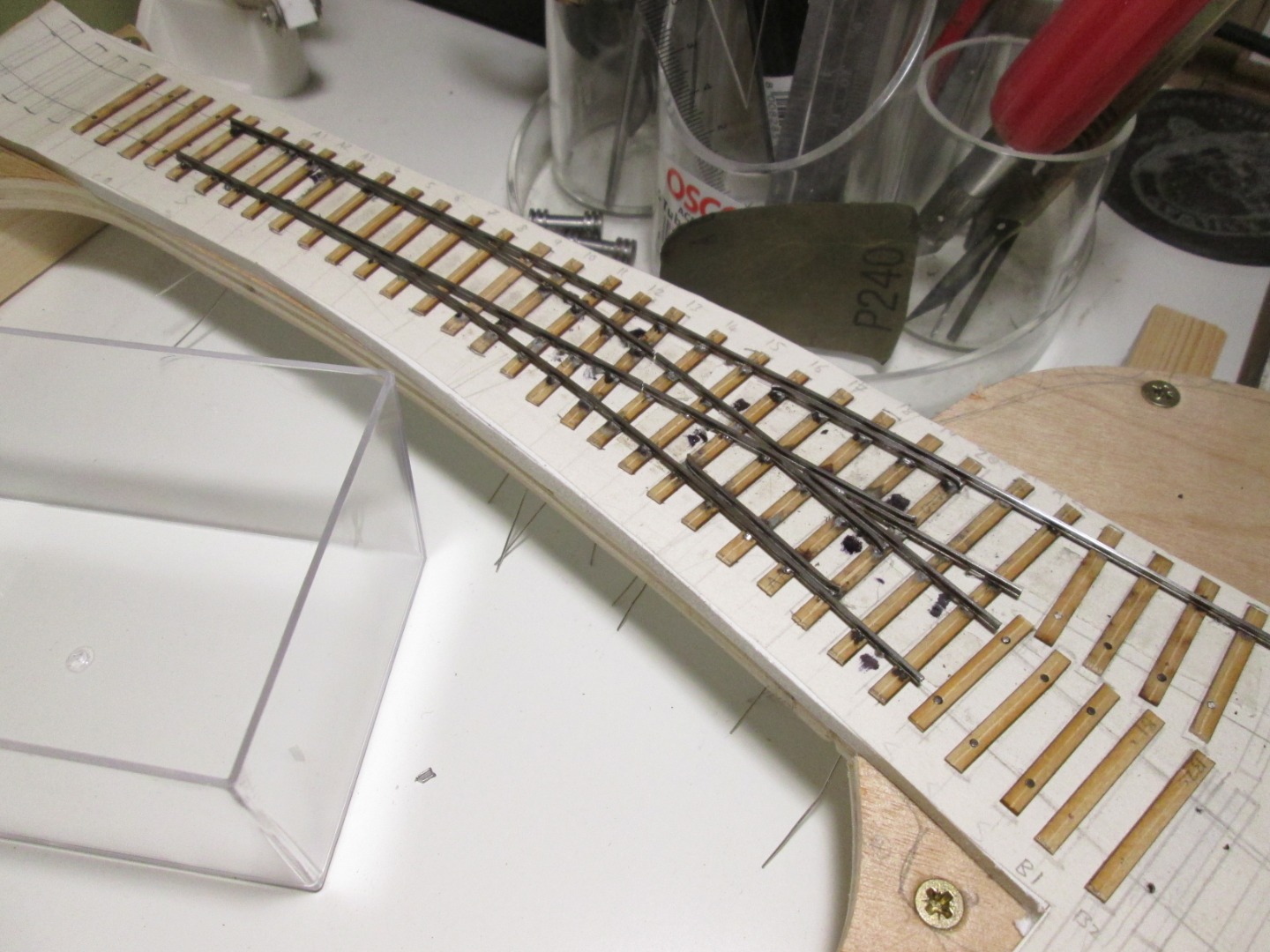 I originally laid the track out with Peco code 75 streamline track but I found that for the amount of space I had I couldn’t get much in. At this point friend and work colleague JT advised building my own and the rest we shall say is history…..