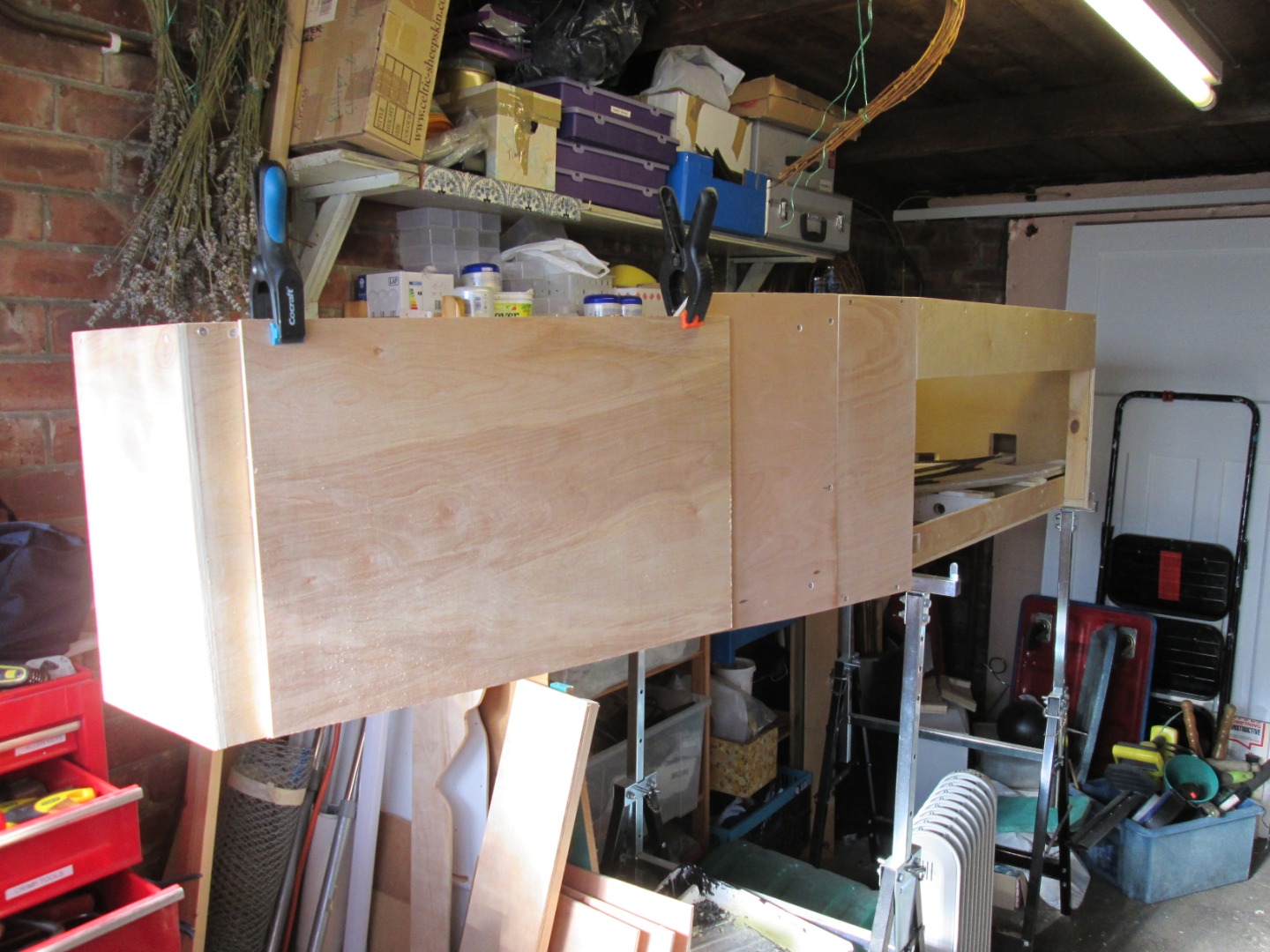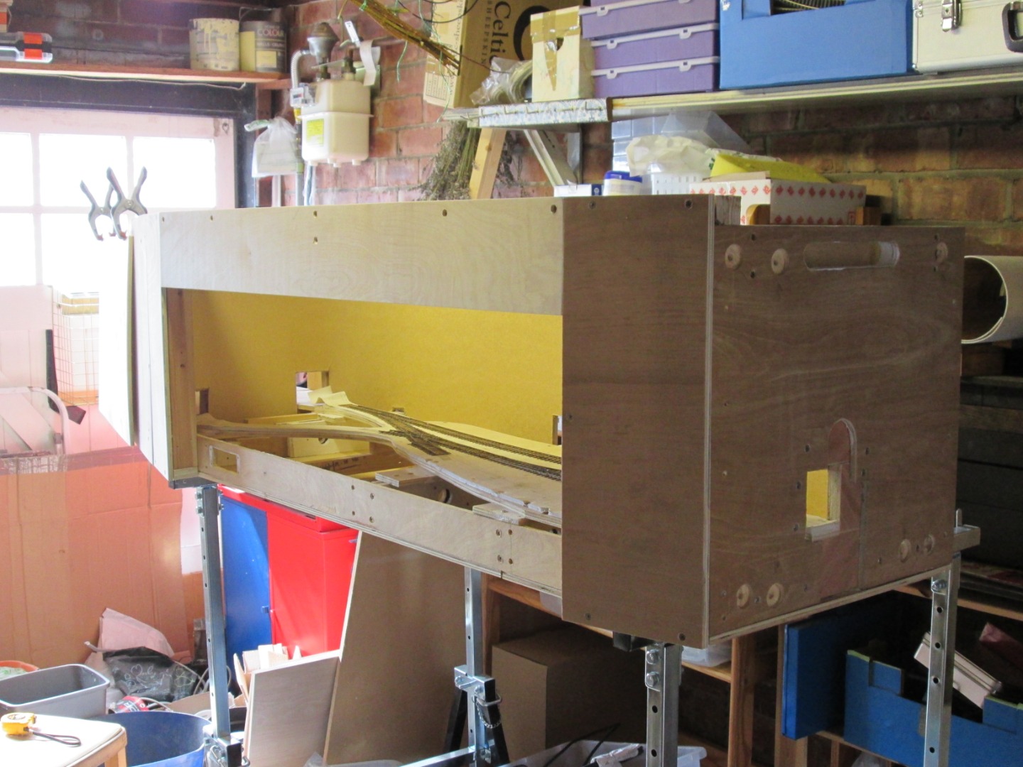 so a frame was built around the track board with wings and a proscenium arch out of rather thick plywood