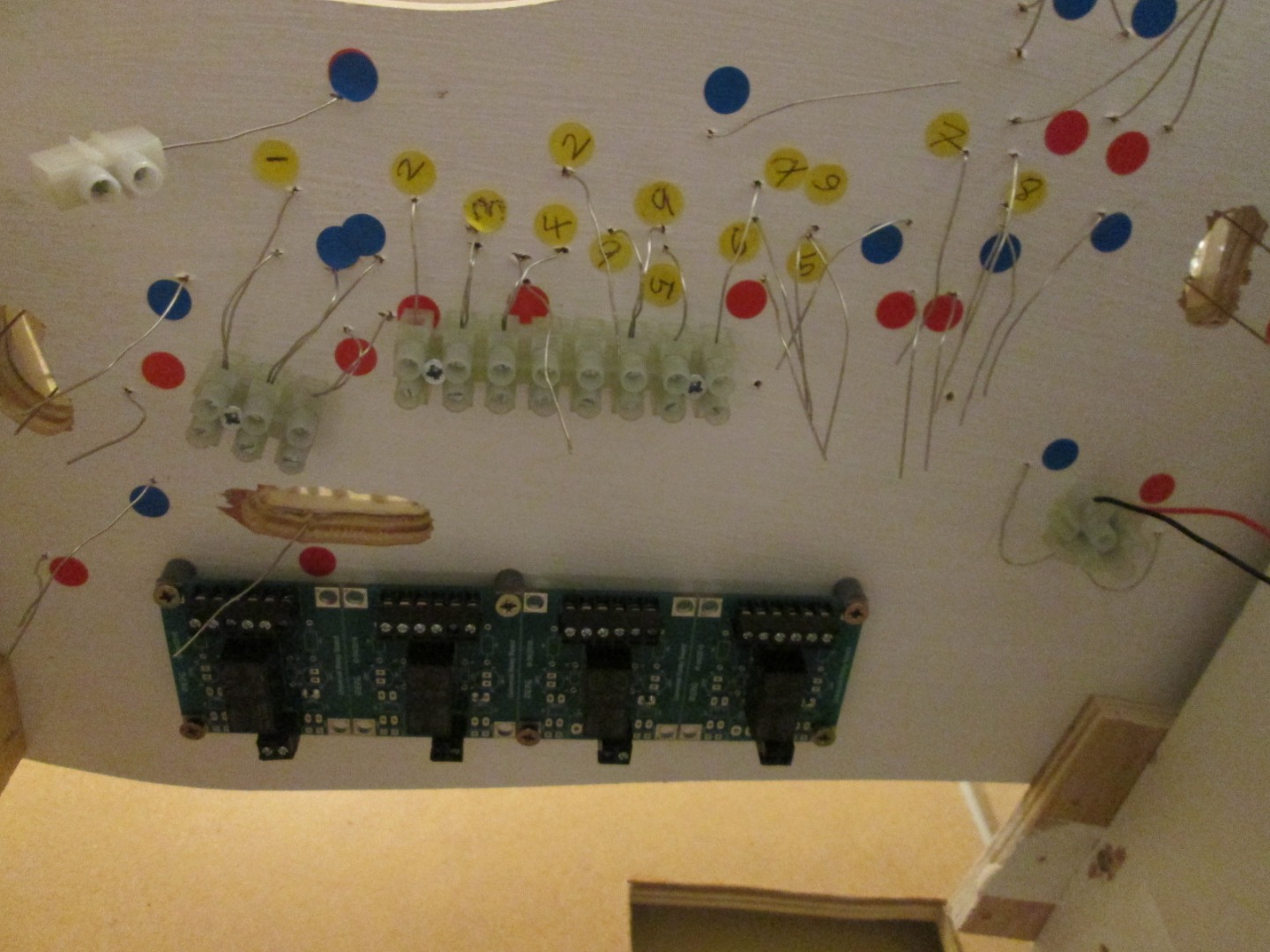 Working in the robotics industry things tend to rub off on you.... and even i am very much of the mechanical breed of engineer i have may friends who work in electronics and software, couple this with my membership of MERG www.merg.org.uk/ and i think i was doomed to have a very high tech layout.the trains are worked via DCC using a mix of Lenz and Roco (although I've also built in an analogue option for testing) equipment. some of the bespoke track requires a complex solution to frog switching and because every bit of rail had been built with two dropper wires underneath the crossing it got very complex wiring up 9 switched sections to 50 individual wires.